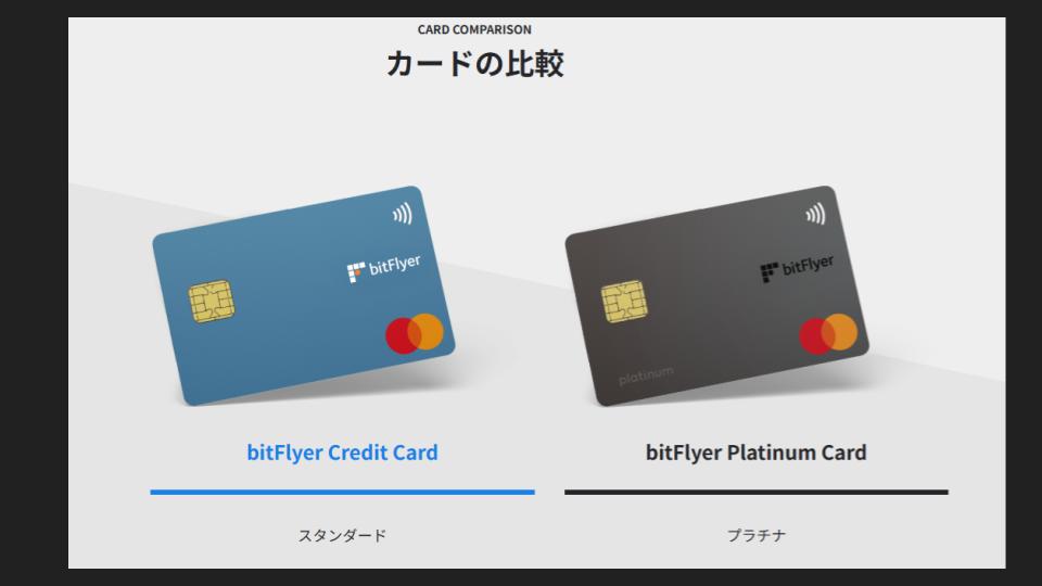 bitFlyer(ビットフライヤークレカ)には、スタンダードとプラチナの2種類があります。