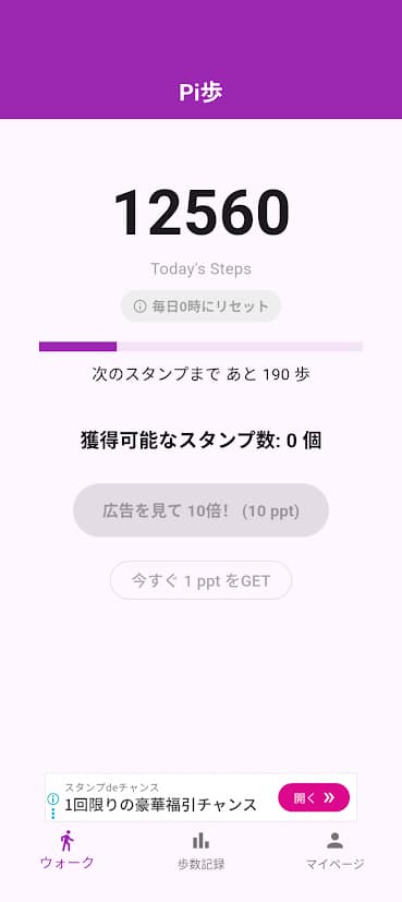 • 1スタンプで1pptもらえる(広告をみて10倍)